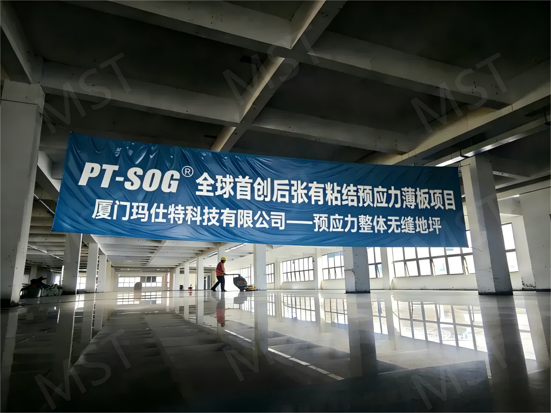 玛仕特团队凭借全流程专业服务,高效攻克大面积施工平整度控制、预应力精准施加等技术难点,工程关键指标远超预期,尽显找平层薄板预应力技术引领者实力。